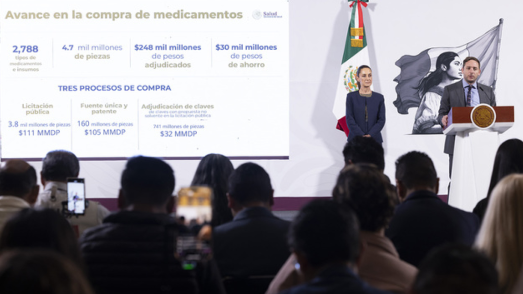 Informó que, a la fecha se han adquirido 2 mil 788 tipos de medicamentos e insumos, lo que representan 4.7 mil millones de piezas, 248 mil millones de pesos adjudicados, generando un ahorro de 30 mil millones de pesos en comparación con años anteriores.