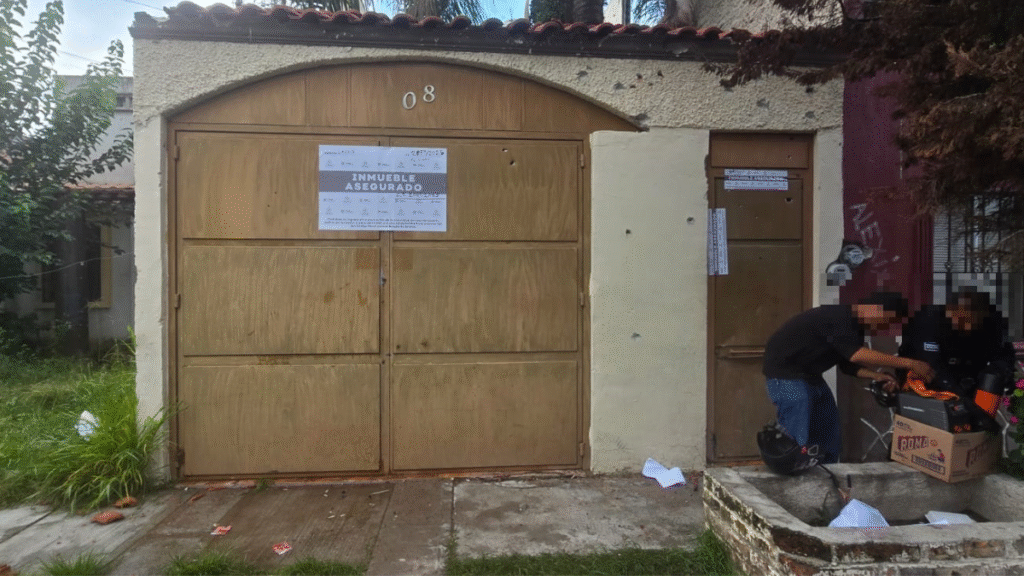 Policías de Investigación, adscritos a la Vicefiscalía en Investigación Regional con sede en Lagos de Moreno, encontraron daños considerables en la fachada, el portón y la puerta, presuntamente causados por proyectiles de arma de fuego.