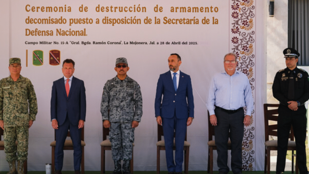Como parte del trabajo interinstitucional para fortalecer la seguridad pública y la paz en el estado, Pablo Lemus Navarro, Gobernador de Jalisco, asistió a la destrucción de armamento decomisado, realizada en las instalaciones de la 15va Zona Militar en Zapopan.