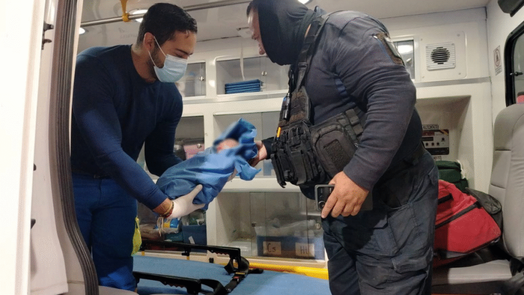 Al acercarse, un hombre de 40 años informó a los oficiales que su esposa, de 26 años, estaba a punto de dar a luz en el asiento trasero de un vehículo Nissan Tiida color plata. Los policías verificaron la situación y, al constatar que la mujer estaba en fase final del parto, le brindaron apoyo inmediato e indujeron el alumbramiento, logrando con éxito que naciera el bebé, quien a simple vista presentaba buena condición y coloración.