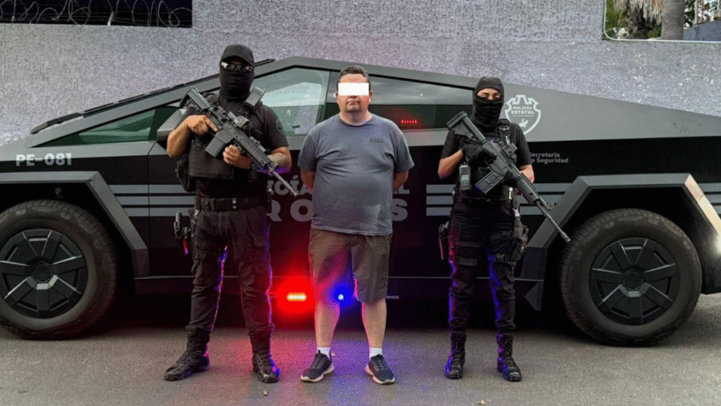 Luego de corroborar su identidad y el mandamiento judicial pendiente con ayuda de la base de datos de una unidad Cybertruck, los oficiales realizaron la captura y traslado ante un agente del Ministerio Público de la Fiscalía del Estado.