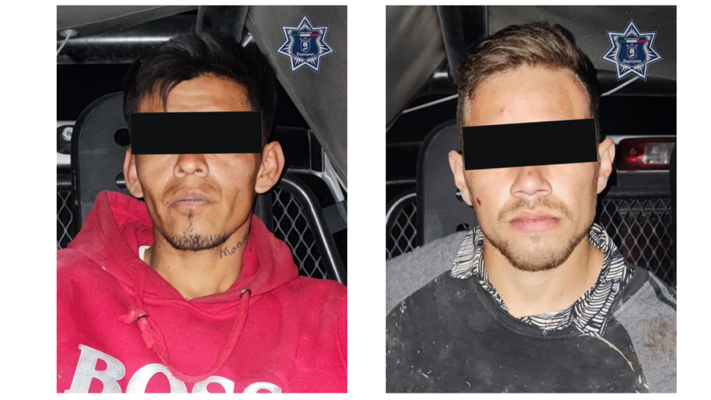 Zapopan, Jalisco. 05 de enero de 2025. Durante un recorrido de vigilancia en la colonia Jardines del Vergel, elementos de la Comisaría de Seguridad Pública de Zapopan detuvieron a dos sujetos que circulaban en una motocicleta sin placas de circulación.