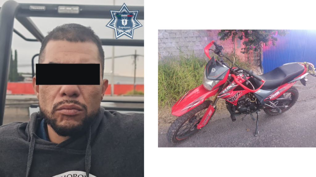 Zapopan, Jalisco – En el marco del Operativo Jaguar, elementos del Escuadrón de Reacción y Operaciones Especiales de la Comisaría de Seguridad Pública de Zapopan detuvieron a un hombre que tripulaba una motocicleta con reporte de robo en la colonia San Juan de Ocotán.