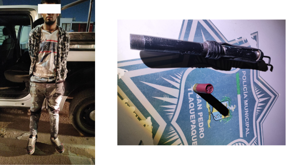 San Pedro Tlaquepaque, Jalisco – Oficiales de la Secretaría de Seguridad y Protección Ciudadana de San Pedro Tlaquepaque arrestaron el día 18 de noviembre del 2024 a un hombre en posesión de un arma de fabricación ilícita calibre 12 con un cartucho útil, durante un recorrido de vigilancia en la colonia Parques de la Victoria.