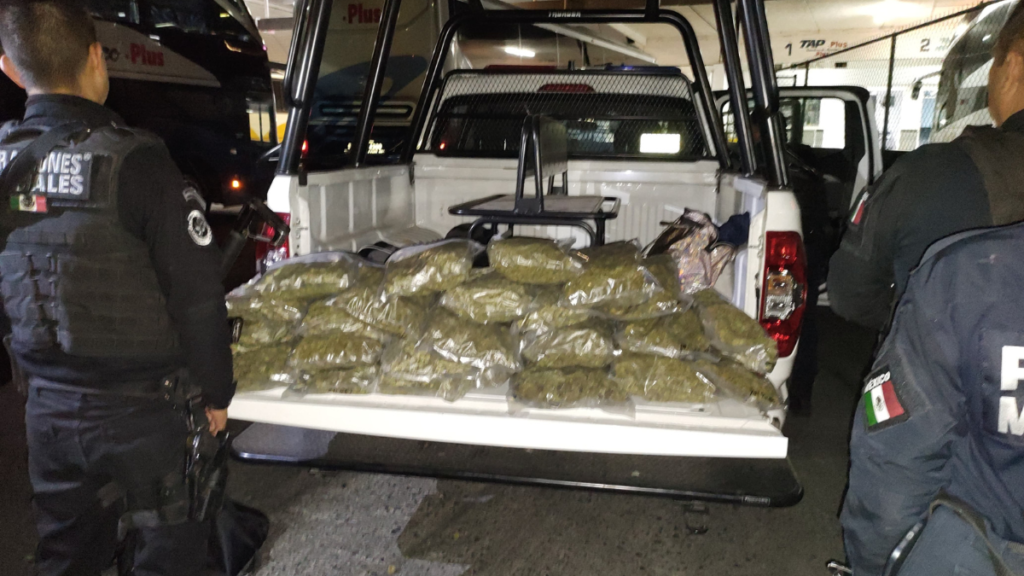 San Pedro Tlaquepaque, Jalisco. – Elementos de la Secretaría de Seguridad y Protección Ciudadana de San Pedro Tlaquepaque lograron la detención de un hombre que transportaba tres maletas con aproximadamente 12 a 15 kilogramos de marihuana en las inmediaciones de la Central Camionera.