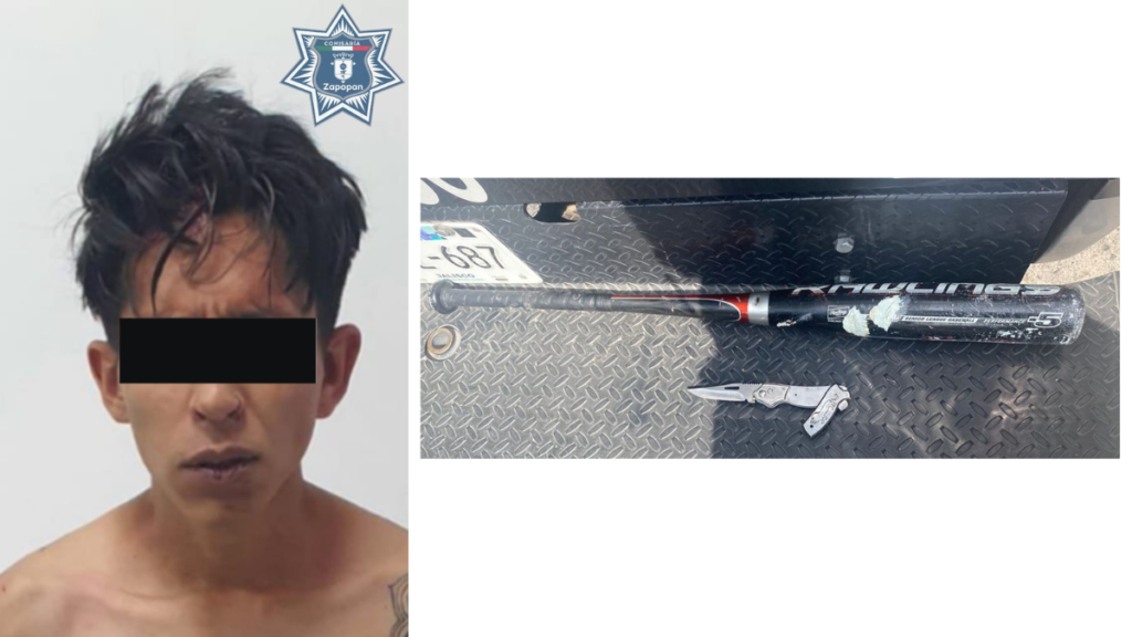 Detienen en Zapopan a hombre armado con bat y cuchillo por amenazas y daños a vivienda