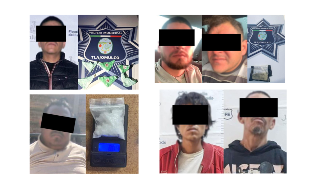 🚨 En distintos hechos, sobre las colonias Hacienda Los Fresnos, San Agustín, Lomas del Sur, Orbara Hábitat, El Zapatito y el corredor López Mateos, se detuvo a cinco masculinos por posesión de envoltorios, cuyo contenido contaba con las características de la droga conocida como cristal o con las de la marihuana.