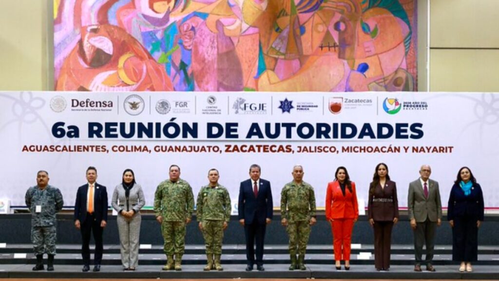 En el encuentro participan David Monreal Ávila, Gobernador de Zacatecas; María Teresa Jiménez Esquivel, Gobernadora de Aguascalientes; Indira Vizcaíno Silva, Gobernadora de Colima; Libia Dennise García Muñoz Ledo, Gobernadora de Guanajuato; Miguel Ángel Navarro Quintero, Gobernador de Nayarit; y Raúl Zepeda Villaseñor, Secretario General de Gobierno del Estado de Michoacán, además de autoridades federales y militares.