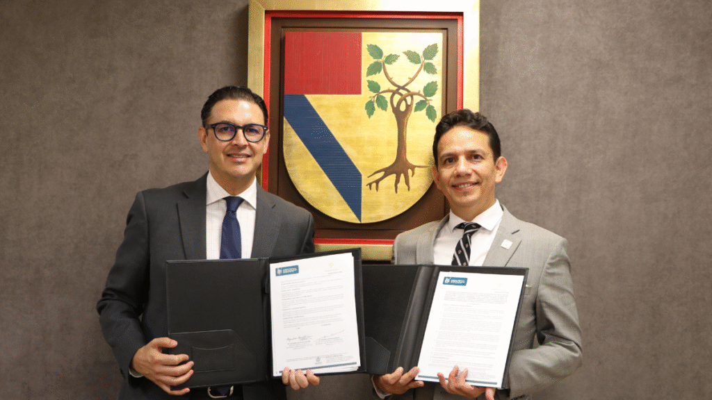 Alejandro Axel Rivera Martínez, Director General del IJCF, y Abraham Mendoza Andrade, Rector de la Universidad Panamericana Campus Guadalajara, signaron el acuerdo y destacaron la importancia de la colaboración académica entre ambos organismos.