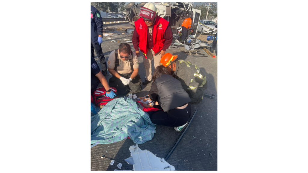Servicios de emergencia, paramédicos y bomberos acudieron rápidamente al lugar para brindar atención médica y asegurar la zona tras el accidente. A su llegada, encontraron la cabina del tractocamión volcada y tres personas lesionadas: un menor de aproximadamente 7 años, quien se encuentra en estado grave; una mujer embarazada con 32 semanas de gestación, también en condición grave; y el conductor del vehículo, reportado en estado regular.