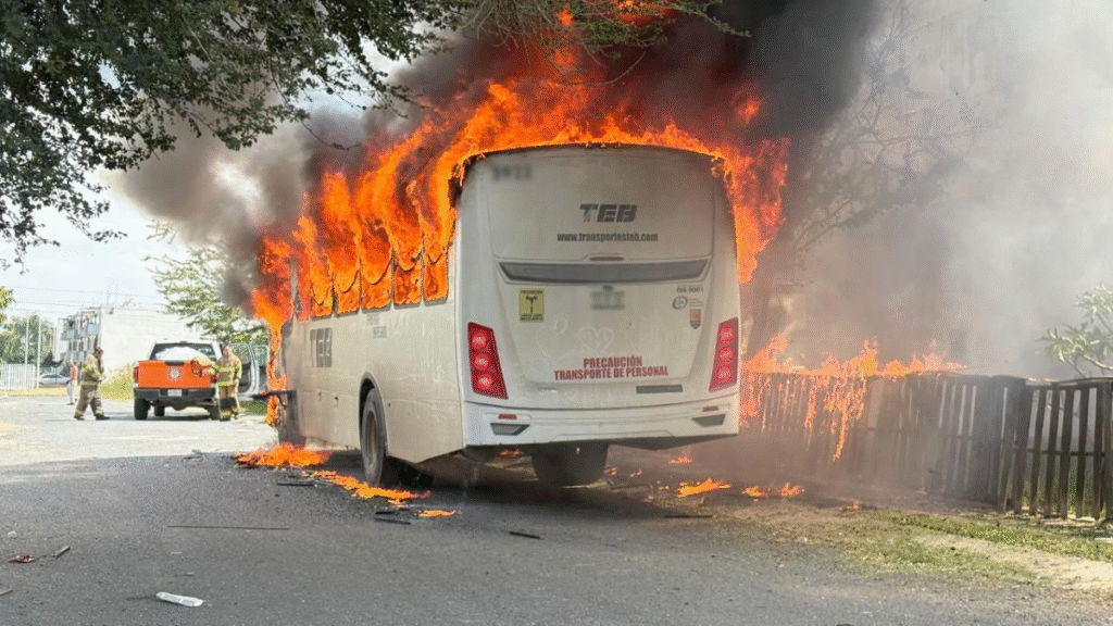 Sofocan bomberos de Tlajomulco incendio en autobús en Villa Fontana Aqua